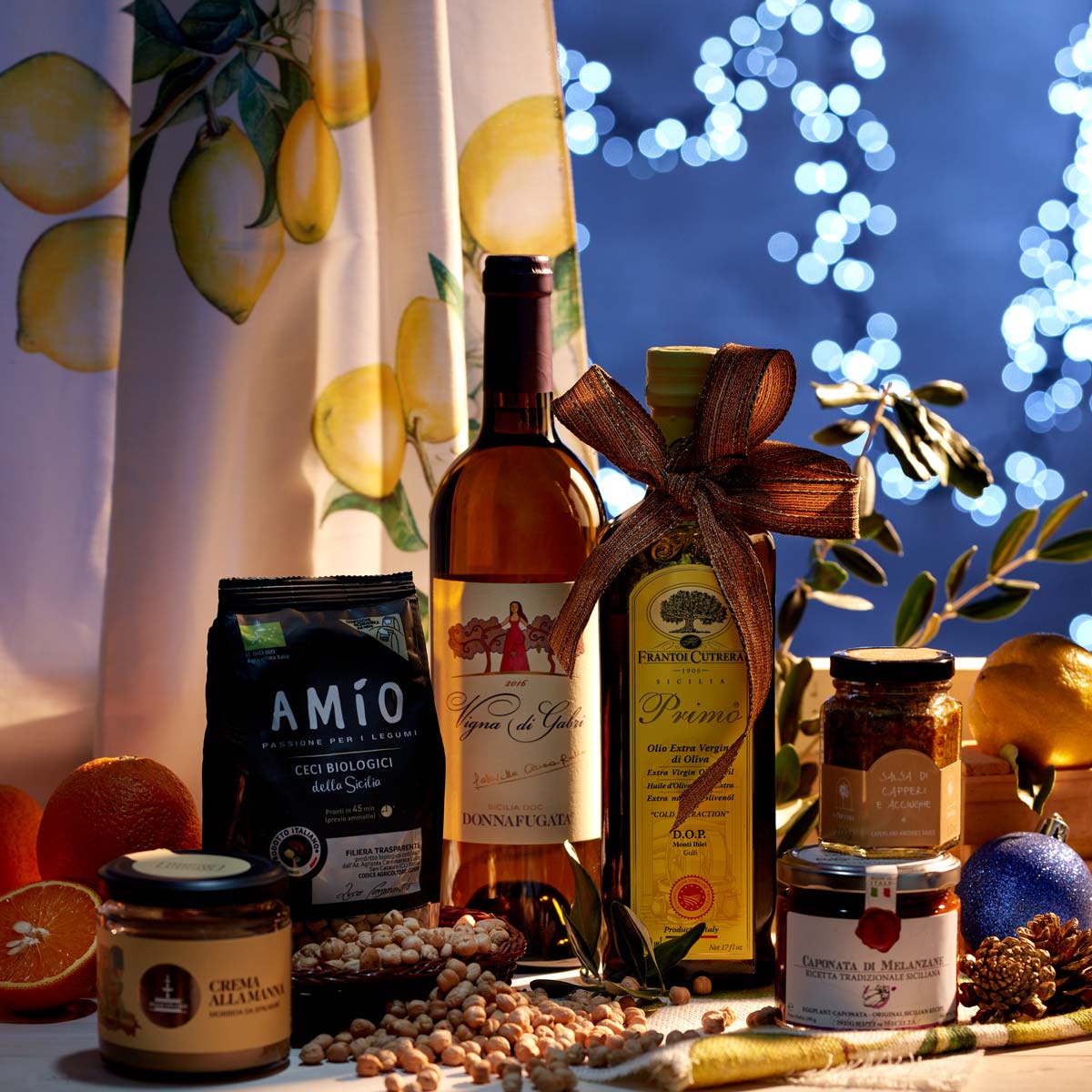 -Natale in Sicilia, per ritrovare il sapore dei pistacchi di Bronte DOP nel raffinato Pesto Daidone Exquisiteness, o il profumo del grano siciliano nelle Busiate. Si festeggia con lo squisito Panettone Fiasconaro, e si brinda con il Brut Donna Fugata, e altre prelibatezze.